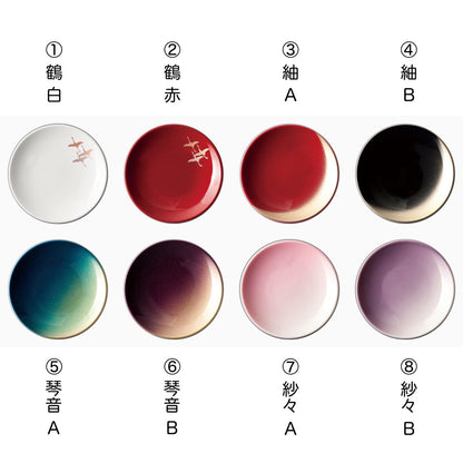 デザイン:1. 鶴 白 2. 鶴 赤 3. 紬 A 4. 紬 B 5. 琴音 A 6. 琴音 B 7. 紗々 A 8. 紗々 B