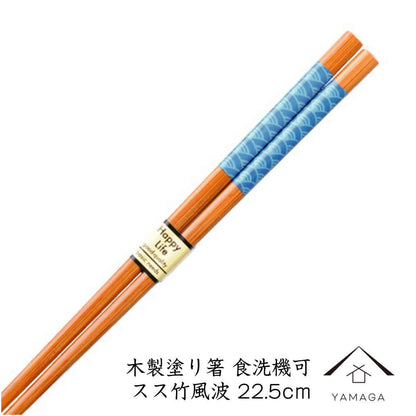 食洗機対応 木製 塗り箸 スス竹風波 23cm 若狭塗り箸