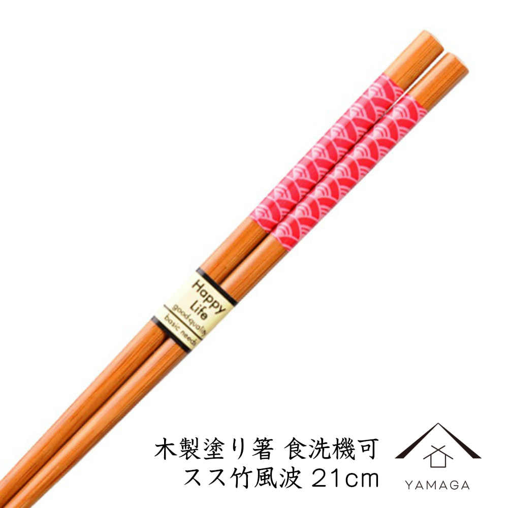 食洗機対応 木製塗り箸 スス竹風波 21cm 若狭塗り箸
